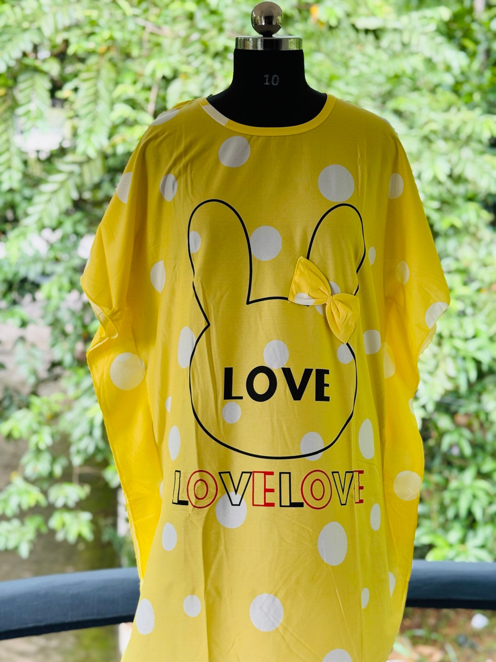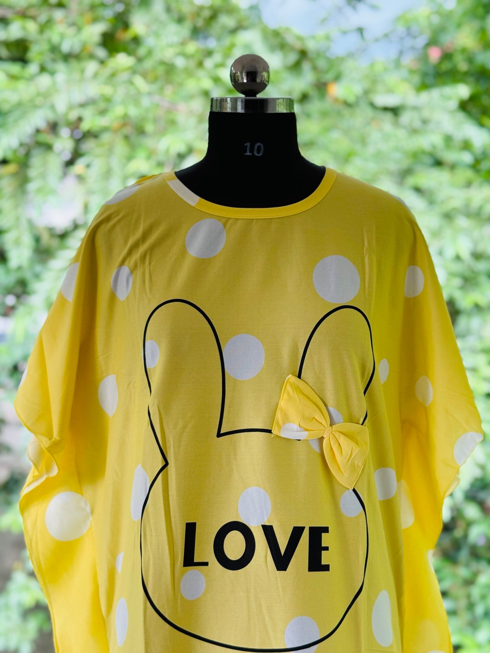Crafted from premium imported Korean fabric, this elegant kaftan maxi offers luxurious comfort and style. Designed in a free size fit to flatter all body types, it features a flowing silhouette with a length of 45 inches, making it perfect for relaxed evenings or bedtime.
