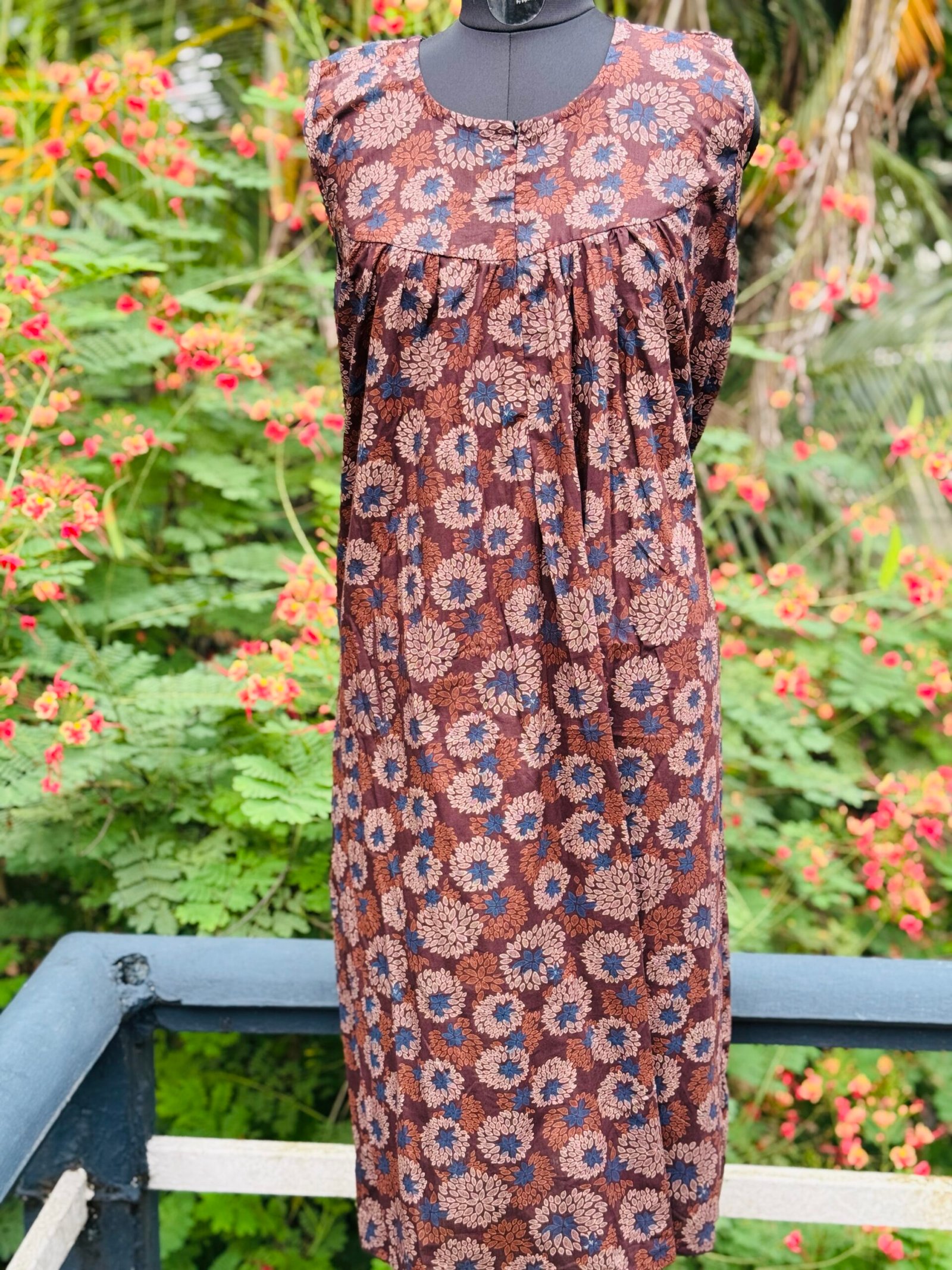 Stay cool and elegant this summer in our beautifully pleated pure cotton night frock. Designed for comfort and style, this piece is both feeding-friendly with a convenient center zip and includes extra half sleeves for versatile wear.
