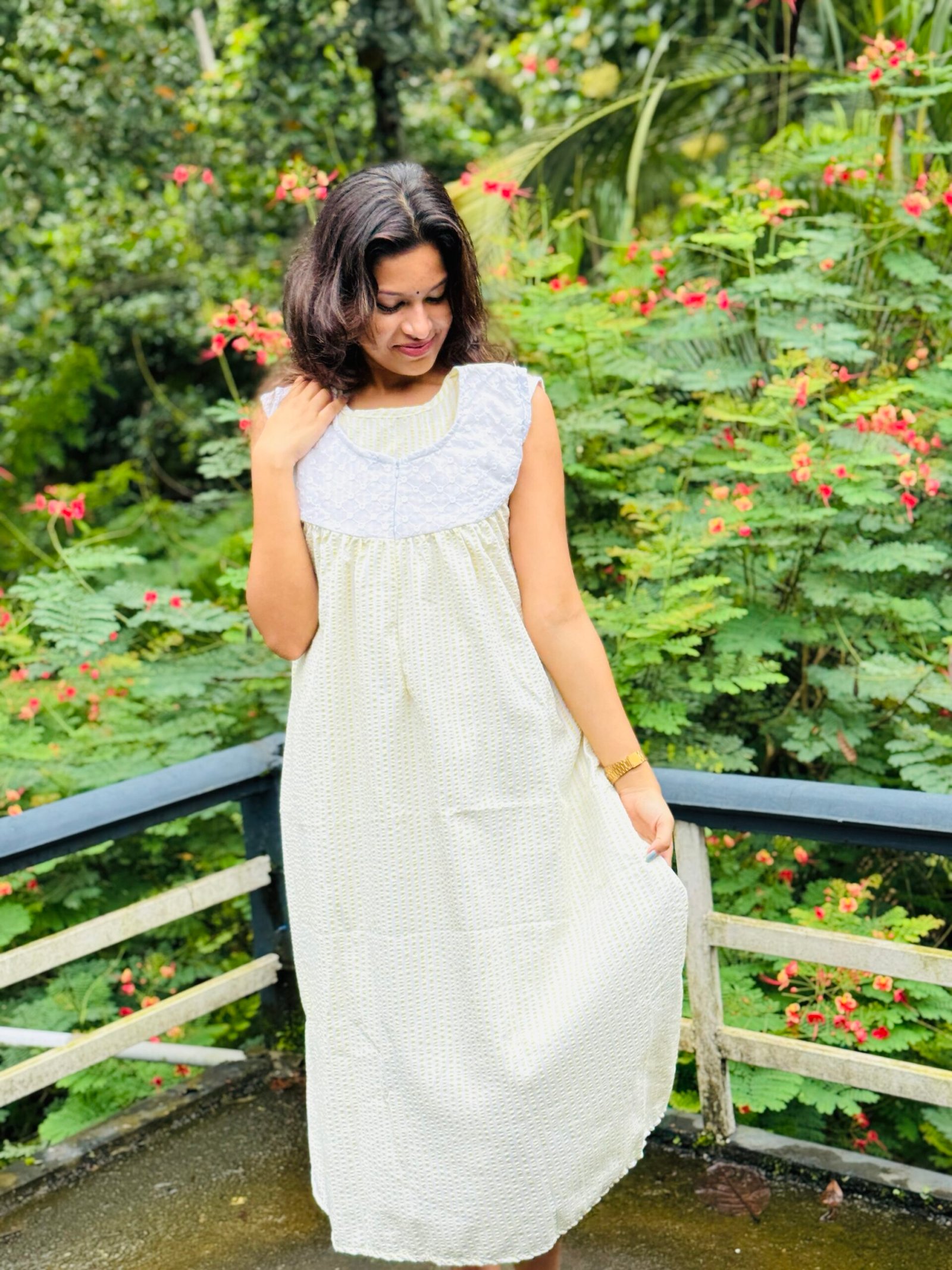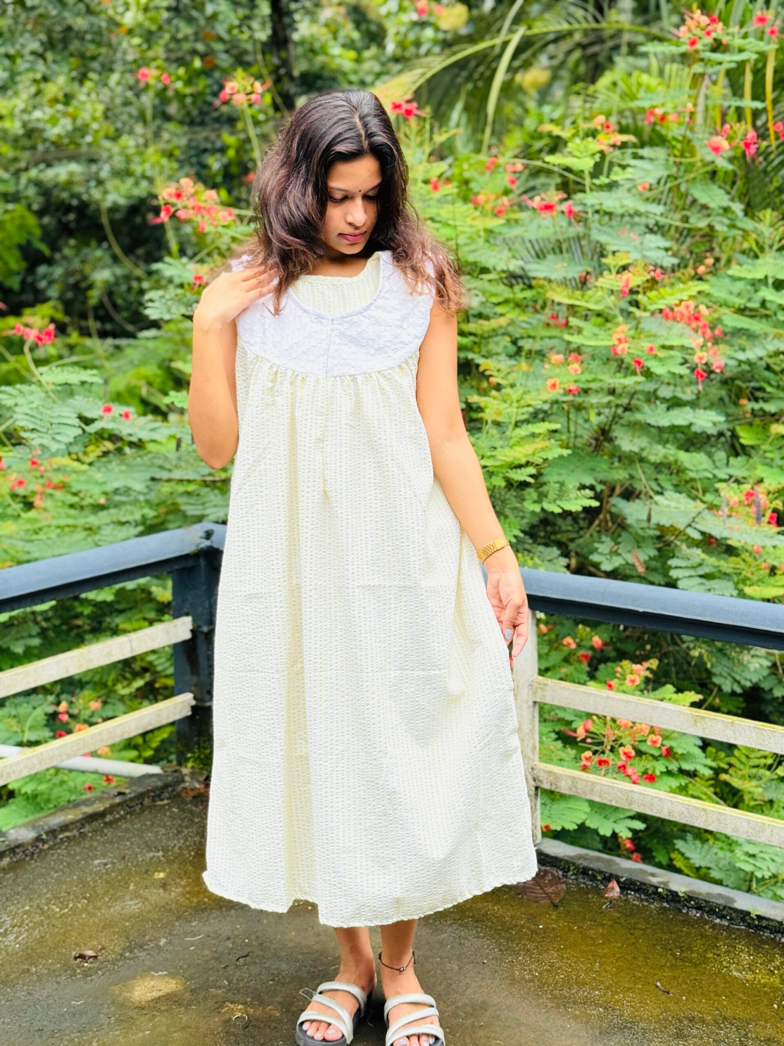 Upgrade your nightwear with this elegant, breathable frock made from luxurious bubble cotton for all-night comfort. The beautifully detailed Hakkoba yoke with fine pleating adds a handcrafted, premium touch — making it perfect for new moms and everyday lounging.