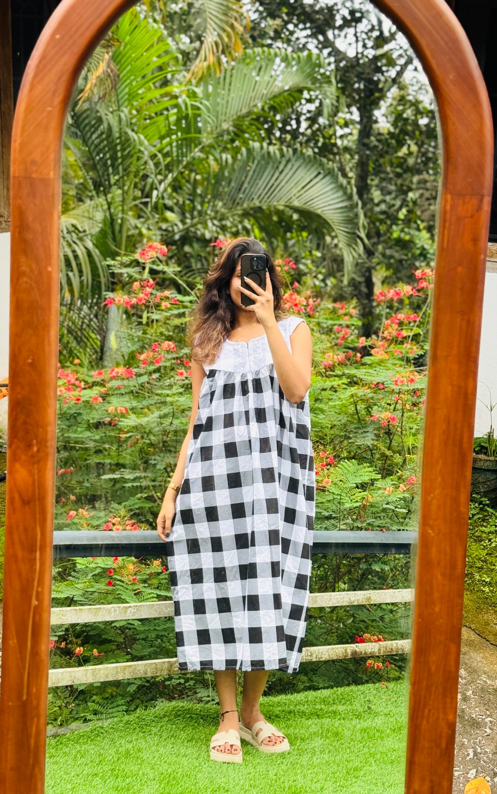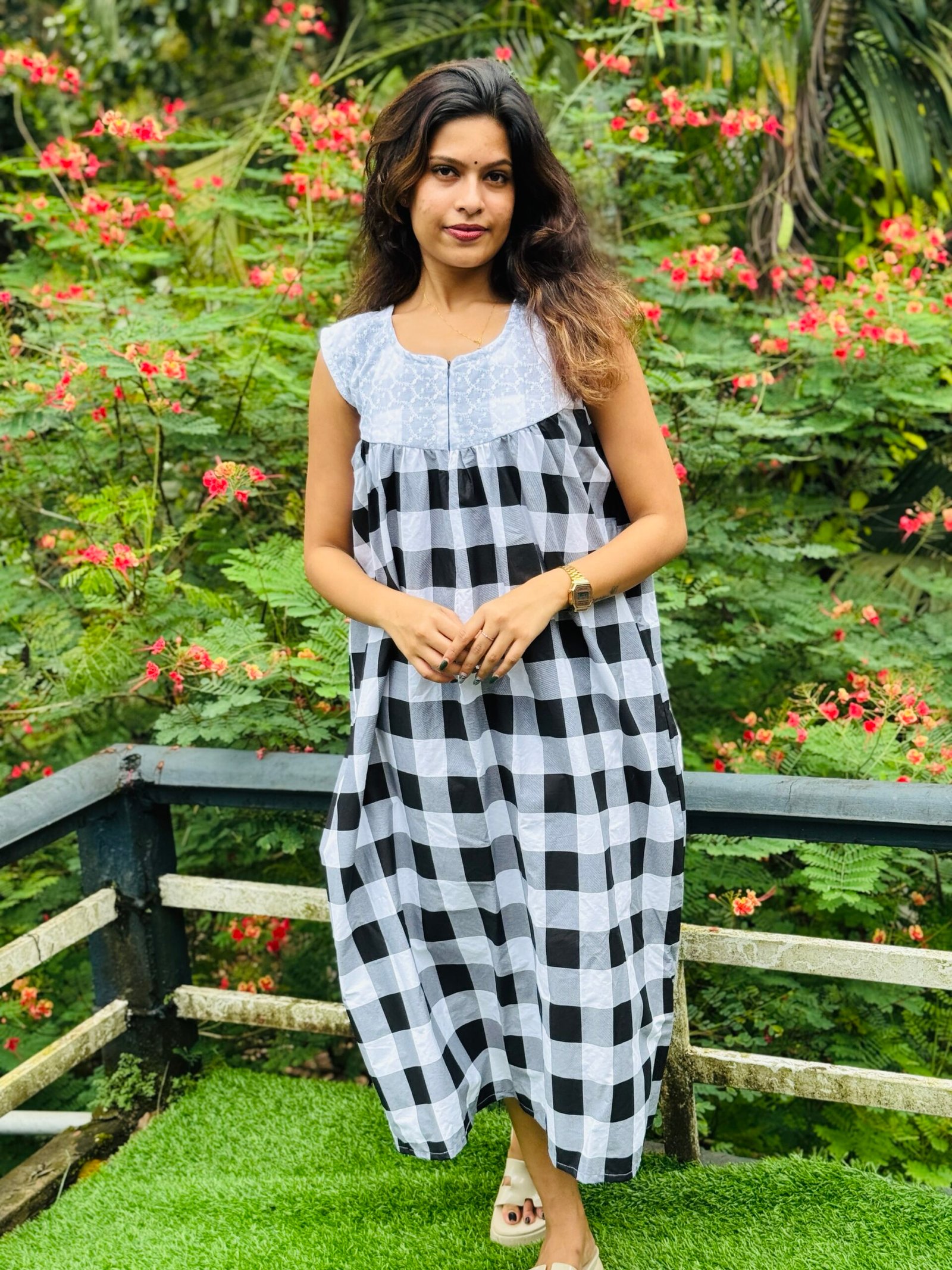 Crafted in soft pure cotton check fabric, this outfit is designed for comfort, elegance, and everyday wear.